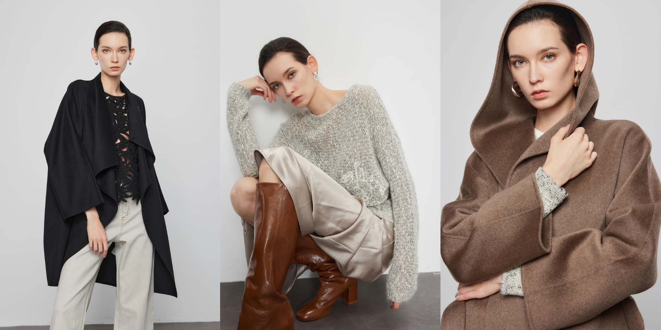 Wool Blend Hooded Wrap-Deep Natural-Tone